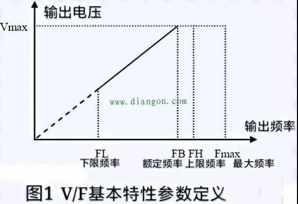 圖1為V/F基本特性參數定義它是現在應用得最多的一種形式的變頻器,當變頻器的輸出頻率從0Hz上升到50Hz時,輸出電壓從0V成正比地上升到380V。