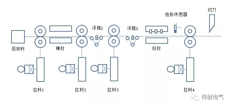 本系統采用(yong)偉創運動控(kong)(kong)制(zhi)(zhi)器+伺服制(zhi)(zhi)袋(dai)機系統采用(yong)4個(ge)(ge)1.3KW拉料(liao)伺服,1個(ge)(ge)0.75KW后放料(liao)變(bian)頻(pin)(pin)器,1個(ge)(ge)4KW主機變(bian)頻(pin)(pin)器,由偉創高性能V5運動控(kong)(kong)制(zhi)(zhi)器(以下簡稱V5)作為控(kong)(kong)制(zhi)(zhi)機構(gou),HMI用(yong)于人(ren)機交互,溫控(kong)(kong)模塊通過固態繼電(dian)器控(kong)(kong)制(zhi)(zhi)熱電(dian)偶加熱來達到(dao)客戶熱封(feng)的(de)溫度。正常運行速度可以達到(dao)120-150袋(dai)/分(200mm袋(dai)長)。