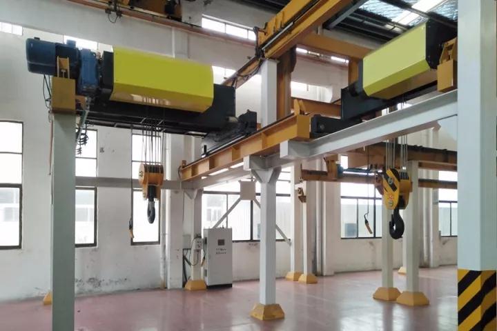 2、大、小車行走(zou)機構:采(cai)用偉創AC70T系列起(qi)重專(zhuan)用變頻(pin)器同時控制(zhi)2臺(tai)或(huo)多臺(tai)電機實現正反轉(zhuan)(zhuan)和高、低(di)速轉(zhuan)(zhuan)換。