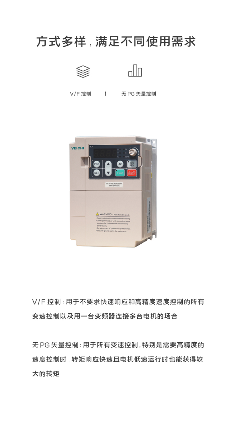 無PG矢量控(kong)制、V/F控(kong)制 |