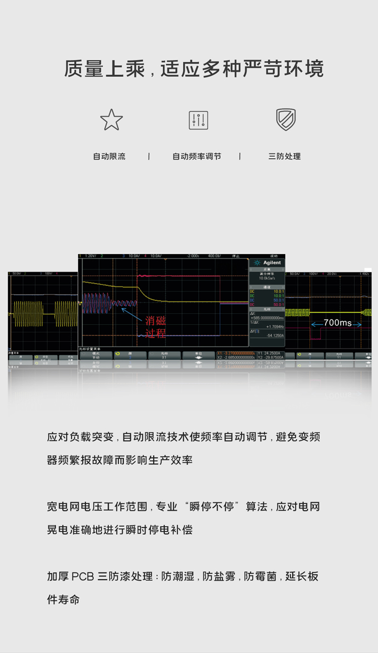 對(dui)運(yun)行期(qi)間電流自動限制,防止頻繁過流故障跳(tiao)閘(zha) |
