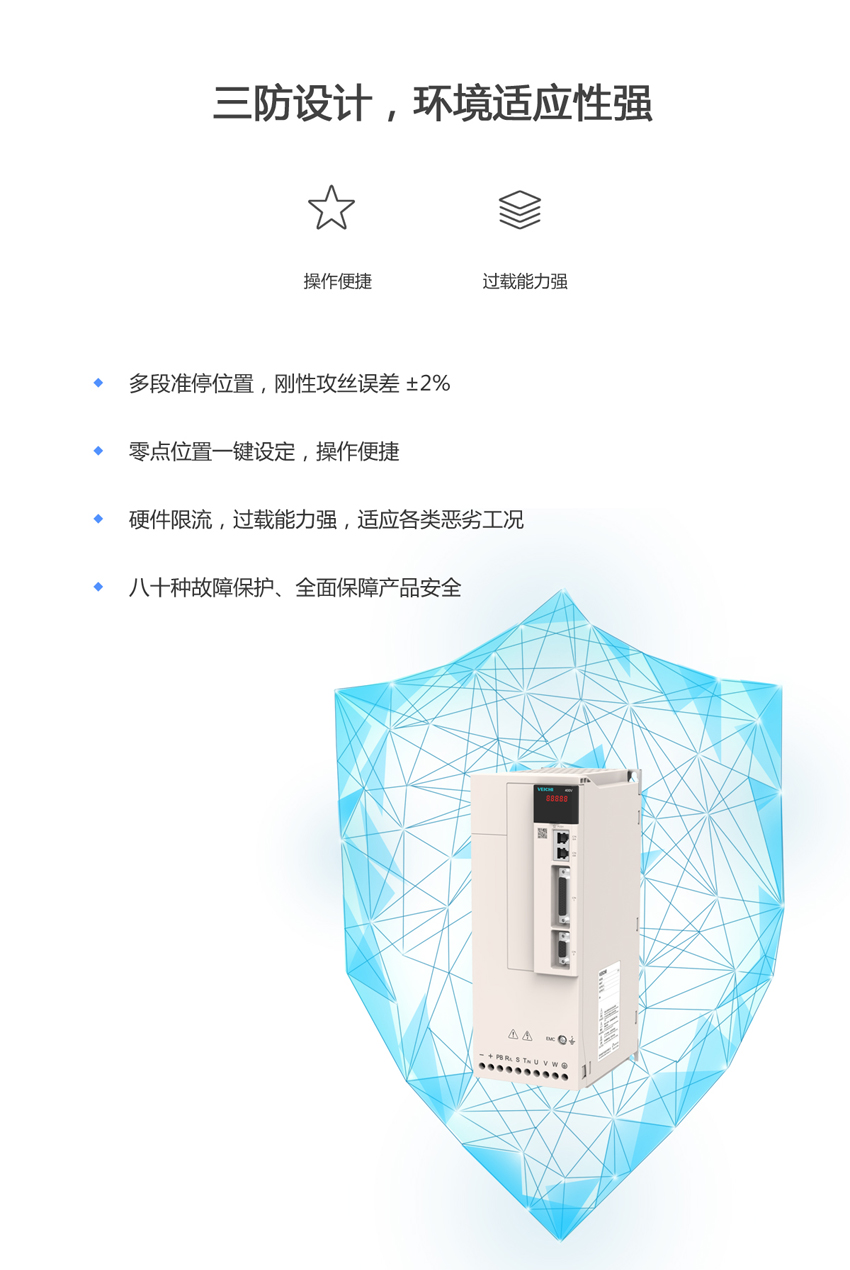 過壓、欠壓、電流限幅,過流、過載、電子熱繼電器、過熱、過壓失速、數據保護、飛速保護、輸入輸出缺相保護 |