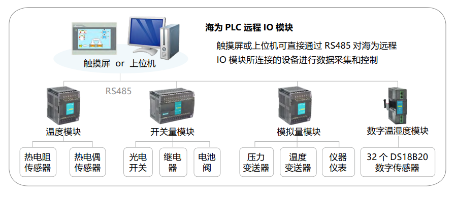 ● 自帶RS485通訊端口,支持單(dan)機使(shi)用,可(ke)作遠程IO連(lian)接;
