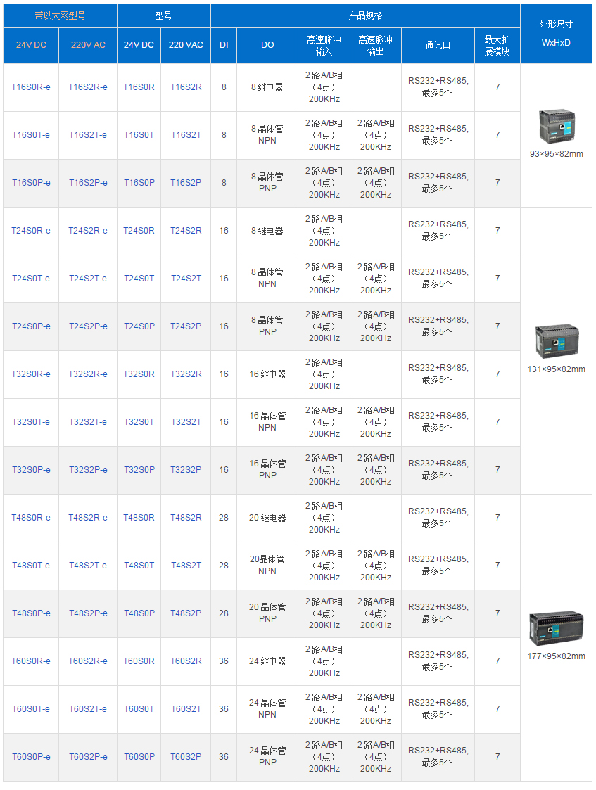 ● 共60種型號,主機點數16點、24點、32點、48點和60點可選;