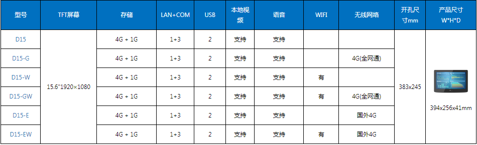 海為15.6寸物聯云HMI型號列表