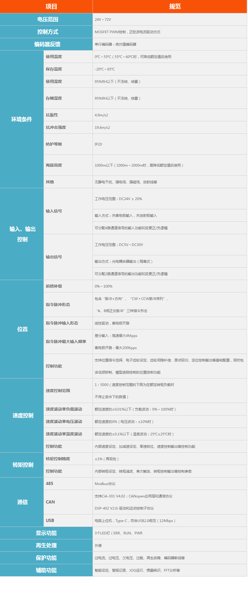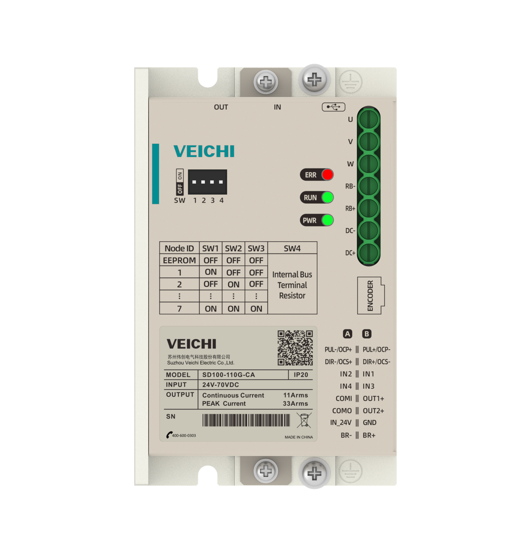 SD100系列低壓伺服系統采用國際領先(xian)算法平(ping)臺(tai),可支持單軸(zhou)/雙軸(zhou)/多軸(zhou)電機算法控制;其輸入(ru)電壓24V~72V,體積(ji)小巧、功能豐富(fu)、靈活易(yi)用、穩定可靠、應用廣(guang)泛,具備高(gao)性能、高(gao)精度(du)、高(gao)轉速等性能特點。