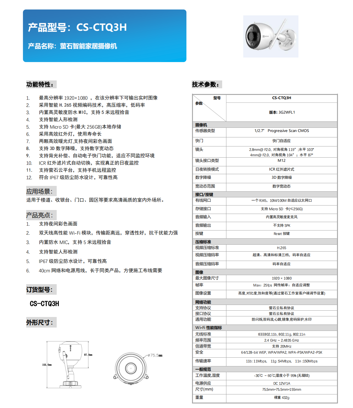 適用于樓道、收銀臺、門口、園區等要求高清畫質的室內外場所。